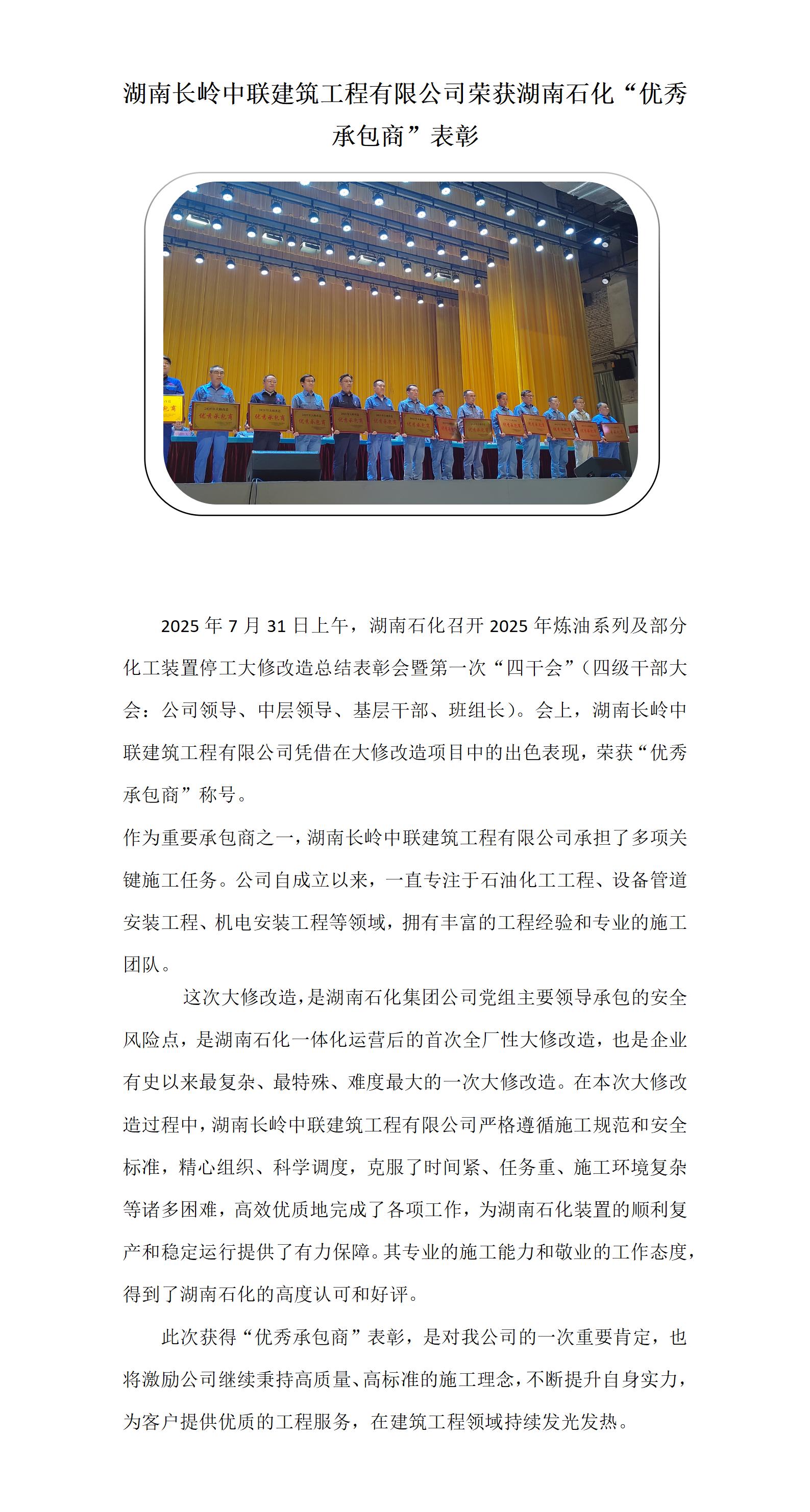 2025年中石化優(yōu)秀承包商頒獎